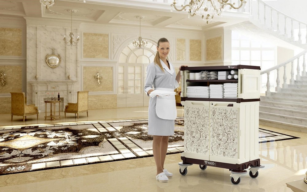 Компания TTS предлагает продуманные решения, полностью отвечающие этим требованиям. В ассортименте производителя – специализированные тележки, созданные именно для гостиничного сервиса. Их главная задача — облегчить уборку номеров и сбор постельного белья, при этом не нарушая визуальной гармонии пространства. Достигается это за счёт строгого, элегантного и сдержанного дизайна, благодаря которому техника остаётся практически незаметной в интерьере.