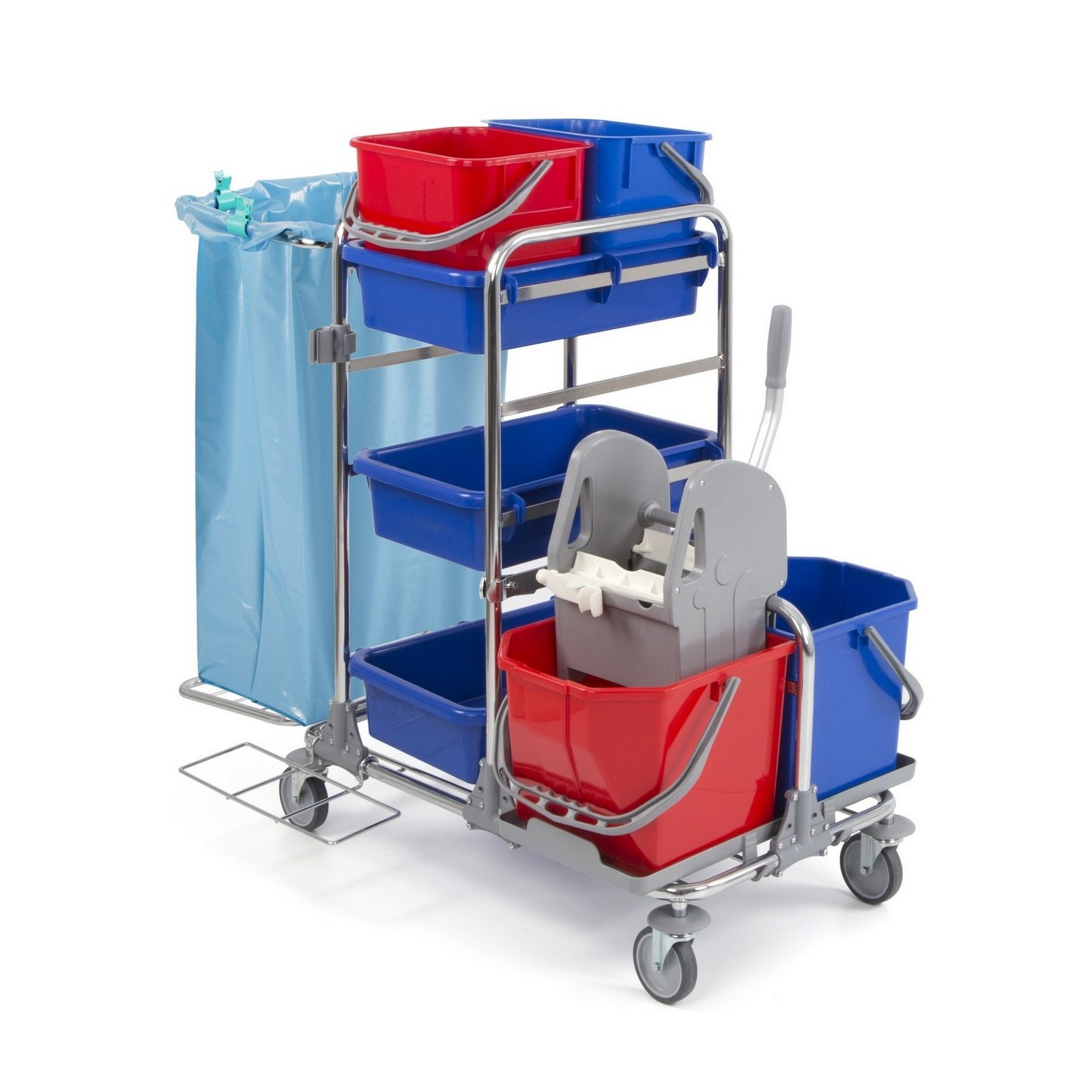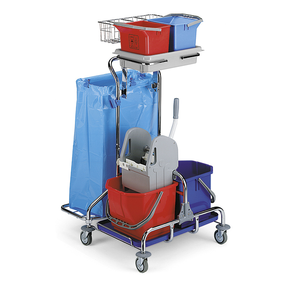 Для повышения эффективности клининговых процессов на объектах большого, среднего и малого масштаба предназначена тележка многофункциональная. Это мобильное приспособление, состоящее из нескольких съемных емкостей (ведер, контейнеров, ящиков, мешков). Оно позволяет выполнять различные виды влажной и сухой уборки, комплексно обслуживая помещения.