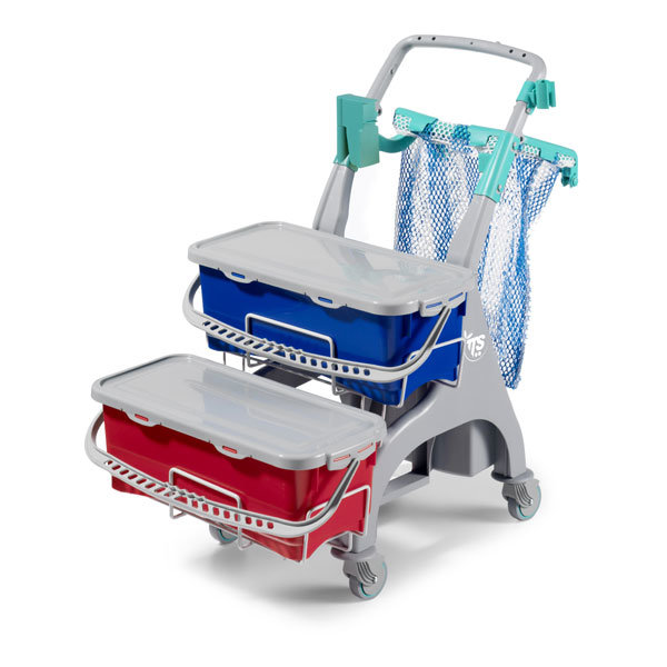 Тележка Nick Hermetic 109 пластиковая с 2-мя герметичными 20 л ведрами синего/красного цвета и держателем мешка предназначена для уборки помещений с системой предварительной подготовки мопов и служит для хранения и транспортировки протирочного материала и уборочного инвентаря. Многофункциональная уборочная тележка TTS Nick Hermetic 109 оснащена всем необходимым для проведения уборки в небольших и средних помещениях.